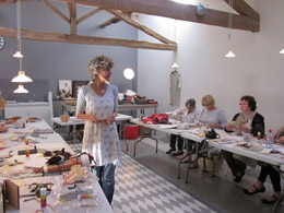 Anna's creative workshops are filled with her love of collage, French aesthetic, vintage ephemera and signature beeswax technique. The studio will be stocked with authentic materials: old books, cartes postales, postage stamps, ledgers, ribbons and lace, all to be transformed into journals, small art pieces and keepsakes. Lizzie will indulge your textile fantasies by providing a cache of French linens to be repurposed into lovely sachets, totes, notions and more. We are visited during the week by the lovely Fabienne, a collector of all things beautiful and fabulous, linens, buttons, watch parts, rosaries and more, from which you can choose to add to your creative supplies or collections, as desired. adding to the festivities, there will be a cookery demo and market tour of the local food market with Marie Claude, who will offer her fresh and whimsical take on local ingredients.