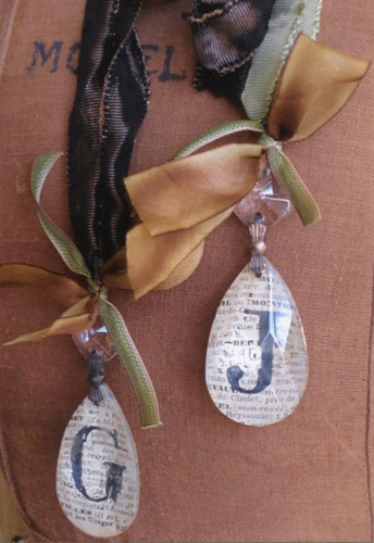 ![]() hand stamped initials captured on 1 1/2" crystals hangs from 18" gently aged silk ribbon wholesale $12 each (min. 6) |
