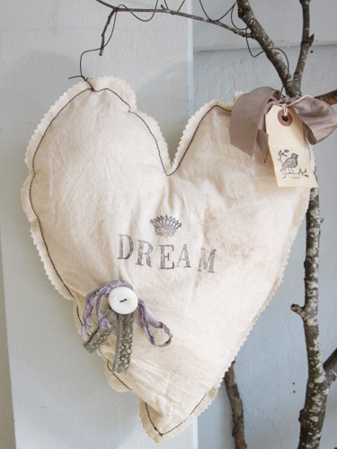 ![]() 12" tea stained muslin hearts hand stamped with dreamy words embellished with assorted vintage buttons, bows and tag hangs from curlicue wire wholesale $18 each (min. 3) |