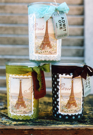 ![]() 4" unscented candle jar wrapped with assorted petite eiffel tower images glitter detail wholesale $7 each (min. 6 per style) |